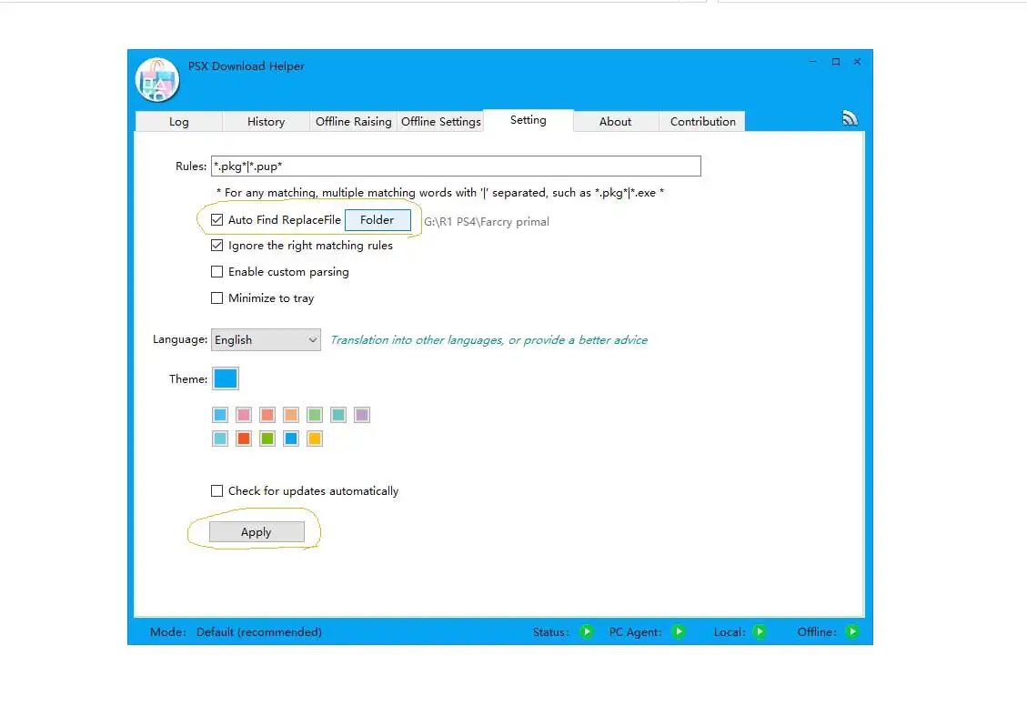 در مرحله بعد وارد لپتاپ یا کامپیوتر شوید و از طریق PSX تیک گزینه auto find and replace file را بزنید و پوشه دیتای خودتان را انتخاب کنید و در آخر روی apply کلیک کنید