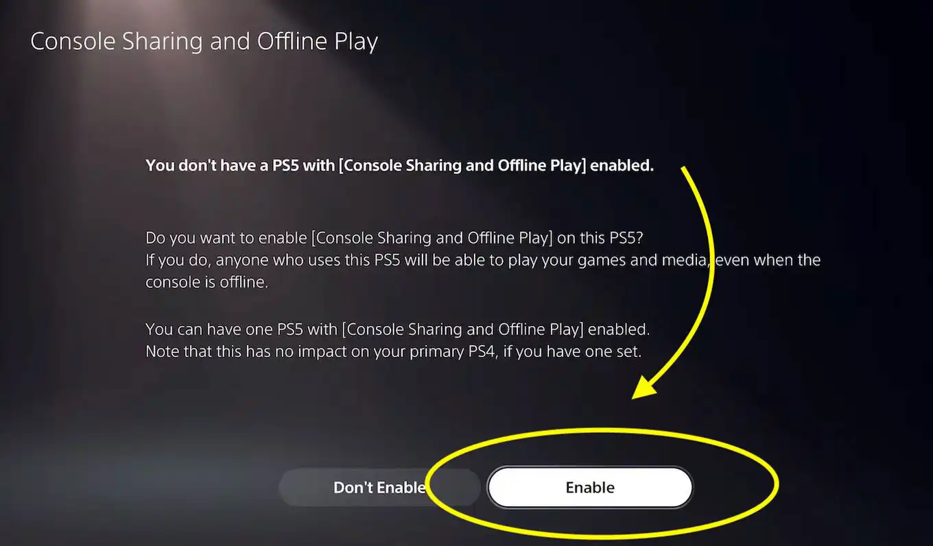 اما اگر اکانت ظرفیت ۱ یا ۲ را خریداری کردهاید، بعد از وارد کردن اکانت برای مطمئن شدن از اینکه اکانت فعال هست از مسیر زیر Setting > Users and Account > Other > Restore Licenses را میزنیم، بعد از اینکه ریستور انجام شد گزینه بالای آن یعنی Console Sharing and Offline Play را میزنیم. حالا دو گزینه میآید Don’t Disable و Disable وقتی اینها را آورد به این معنیست که اکانت ما اکتیو هست و با زدن دکمه دایره خارج میشویم.
