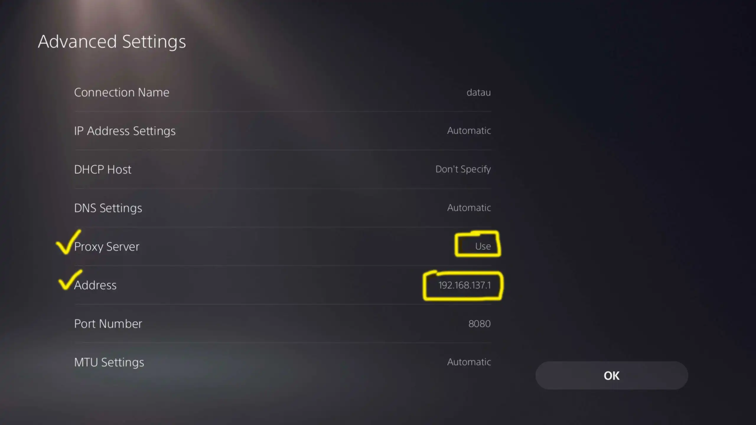 وارد تنظیمات کنسول شوید و از قسمت Network آدرس IP و پروکسی خودتان را تنظیم کنید.