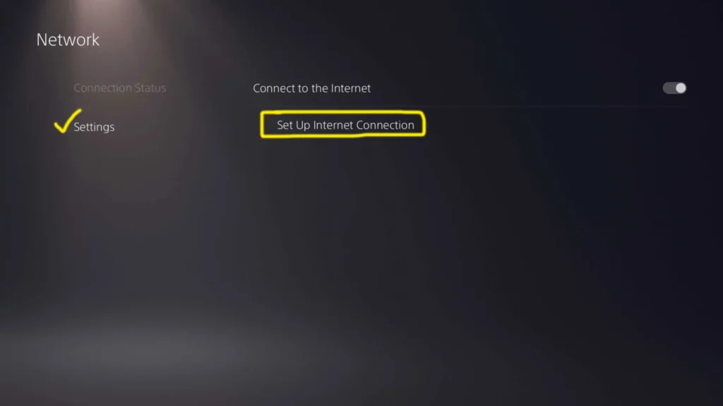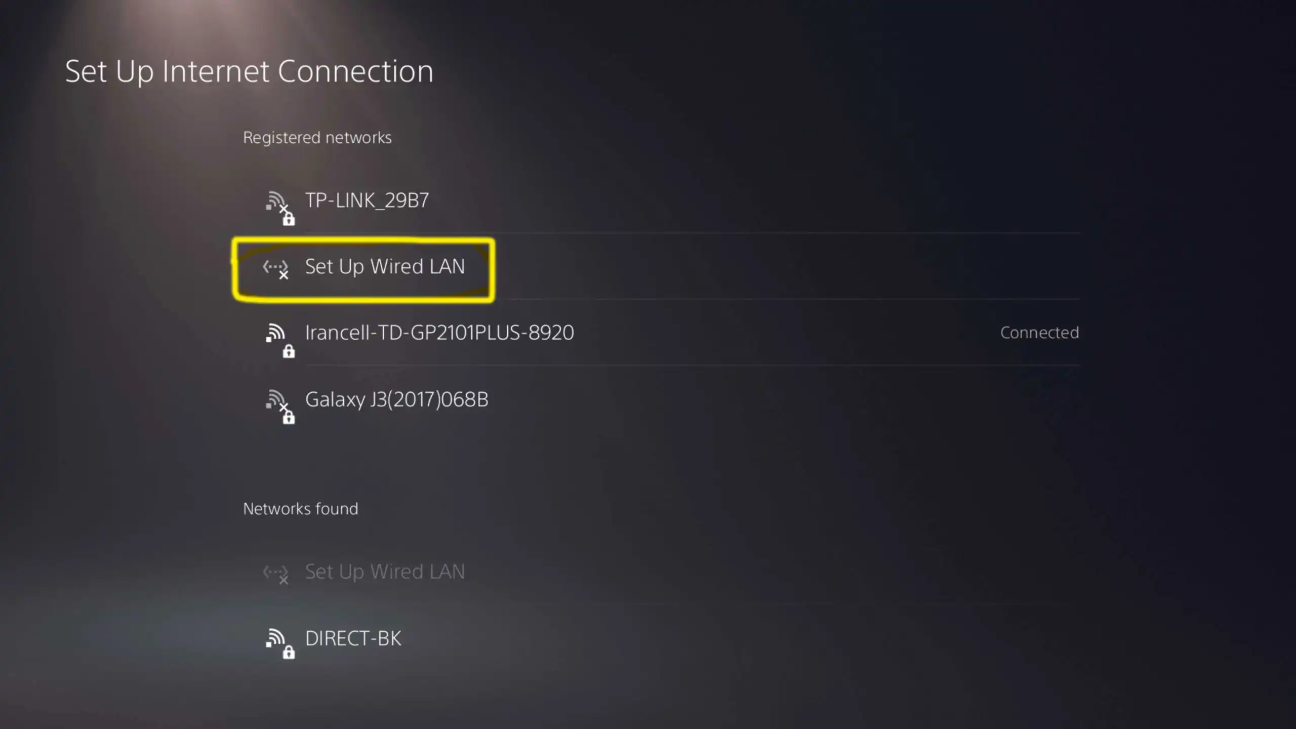 گزینه Set Up Wired LAN را پیدا کنید و با زدن دکمه استارت دسته به قسمت Advance Setting بروید تا یک کانکشن به غیر از وایفای خودتان بسازید. چون همین کانکشن باعث میشود دیتای بازی با سرعت بالا از طریق کابل شبکه منتقل شود.